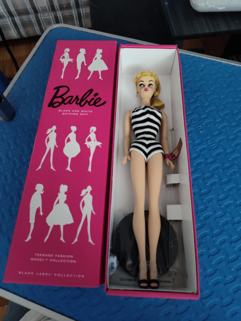 The remote-control operated, cherry-wood finished, electric fireplace made her new place feel more like her. It did not fill the room with the scent of burning wood, but it was a beautiful addition. It had a large mantle, which allowed the TV to sit solidly on top, and there was still room for a favorite photograph of her daughter and a small statue of a 1950s sun bather in a black and white striped swimsuit and bathing cap. The statue looked like an artistic version of the iconic barbie doll of that era that I knew was boxed away carefully in a black, plastic Barbie suitcase in Grandmother’s storage unit. The statue was a favorite of my aunt and a remembrance my Grandmother added to the mantle after my aunt passed away.